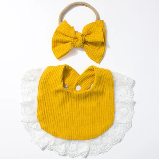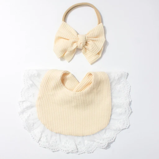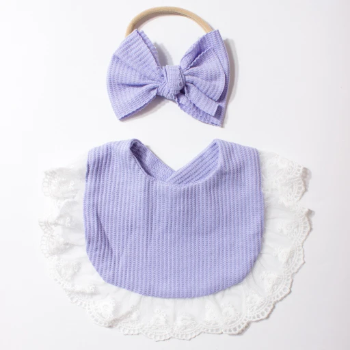 The bib offers a soft waffle texture that is gentle on sensitive skin, while the secure snap closure makes it incredibly easy to use. The stretchy headband, complete with a voluminous bow, ensures a snug yet comfortable fit, making this set ideal for day-long wear. Lightweight and breathable, your baby will enjoy all-season comfort without any irritation.
