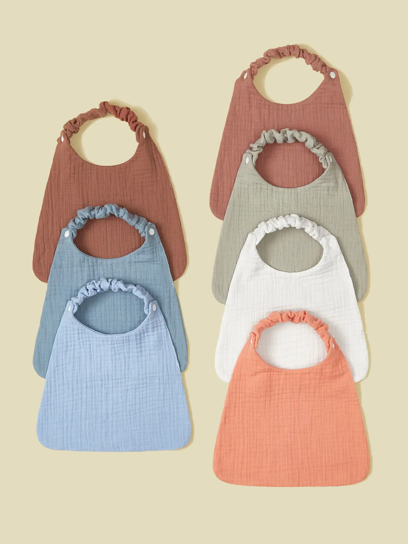 Material: Crafted from 100% cotton muslin—a soft, crinkled weave that’s thick enough to absorb but light enough to avoid bulk (no more bulky bibs that irritate baby’s neck!).