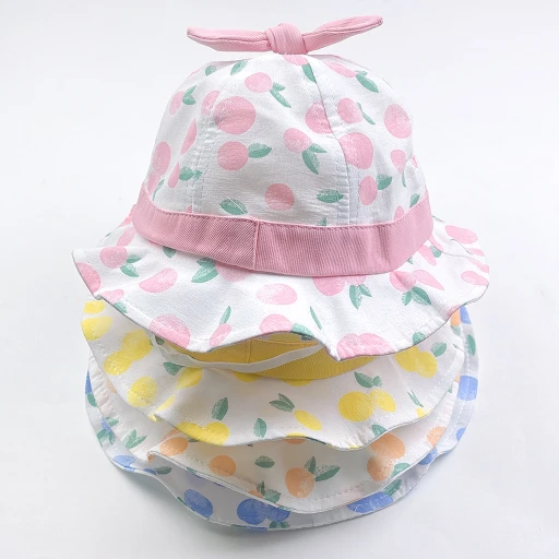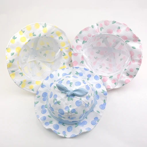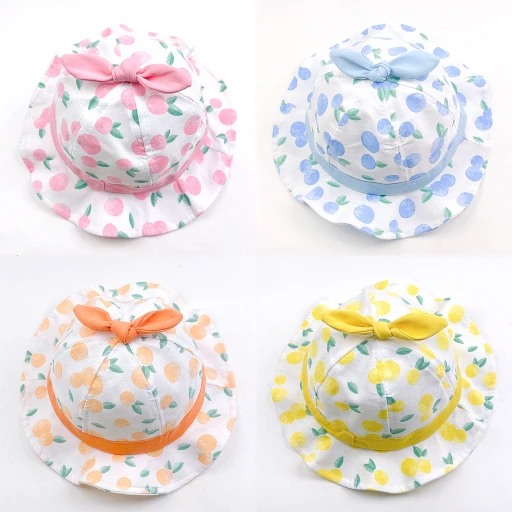 Let your little ones shine in this adorable baby bucket hat! Featuring charming fruit prints, including peach, lemon, blueberry, and orange, complemented by a delightful bunny ear bow accent, this hat exudes cuteness while keeping your baby stylish. Crafted with love from soft, lightweight cotton fabric, it’s perfect for enhancing your baby’s everyday look.