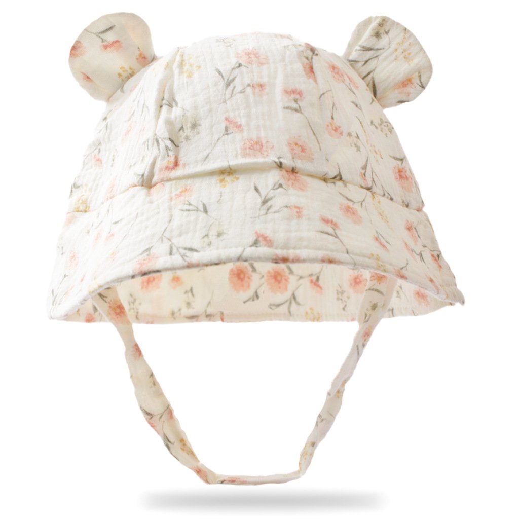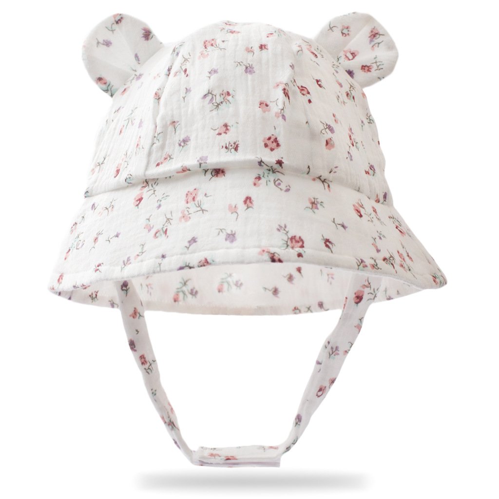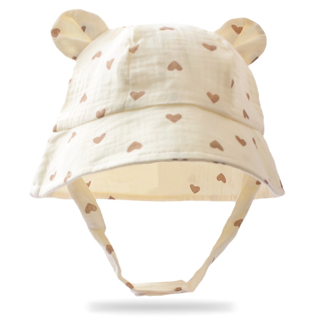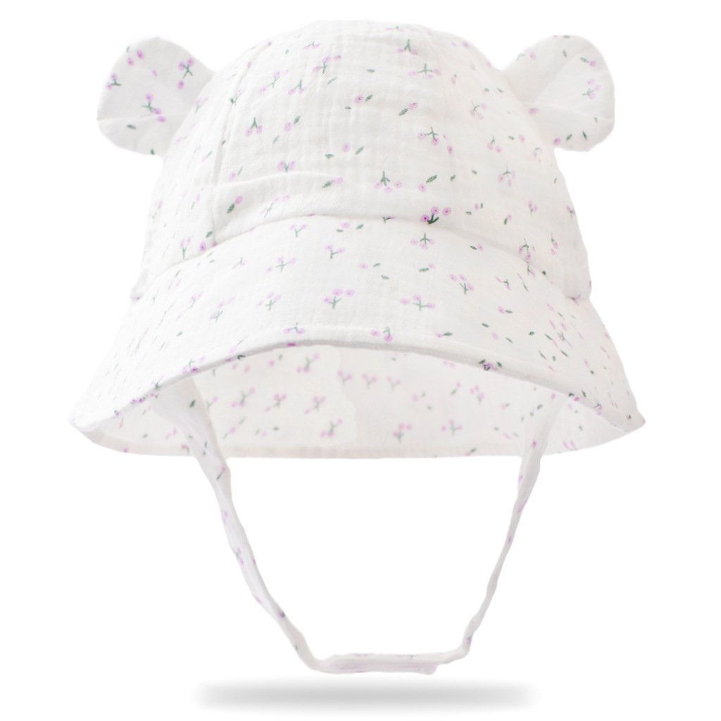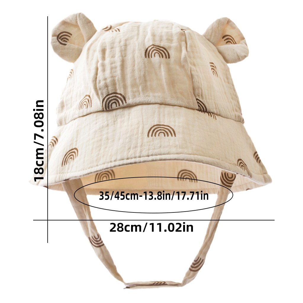 Wrap your little one in adorable style with this baby bucket hat featuring delightful bear ear details and cheerful prints like rainbow, floral, heart, and cherry. Crafted using premium crinkled muslin fabric, this hat ensures your baby stays cozy and cute on every outing while adding a touch of whimsy to their outfit.