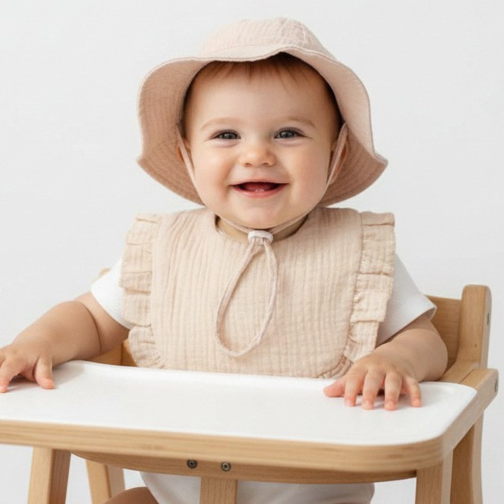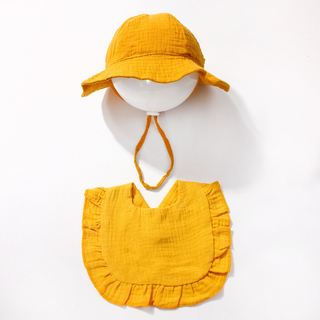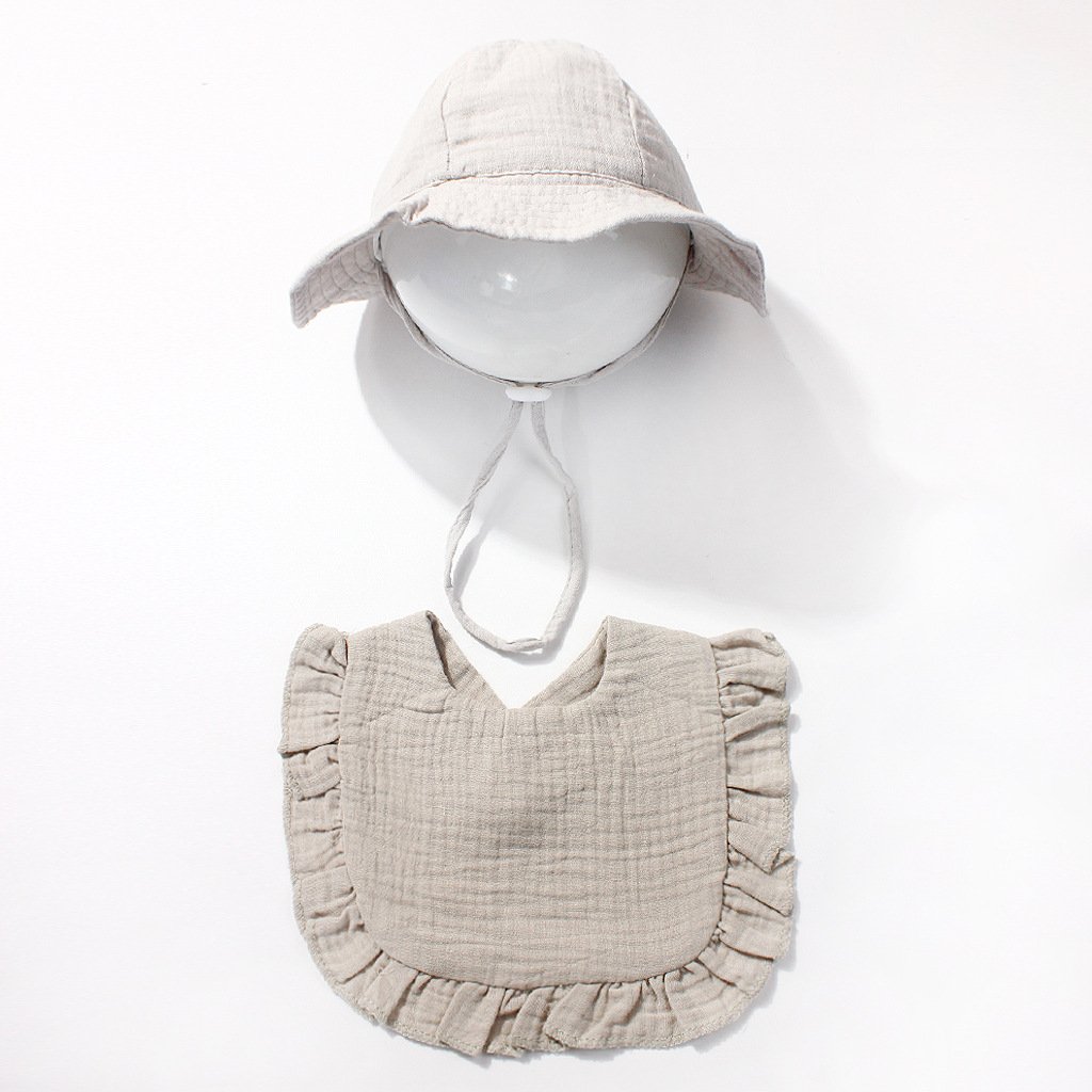 Introducing our premium 2-piece baby set: a crinkled muslin bucket hat and a beautifully ruffled-edged bib. Designed with both fashion and practicality in mind, this matching set instantly elevates your little one’s wardrobe. Its clean, minimalist style pairs effortlessly with any baby outfit, making it perfect for daily wear or memorable photo opportunities.