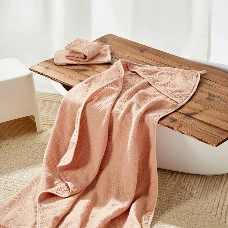 These baby hooded bath towels are crafted from premium, ultra-soft cotton gauze that feels gentle and soothing on your baby’s delicate skin. Designed with a plush, crinkled texture, they create a luxurious experience while ensuring lasting softness and comfort.
