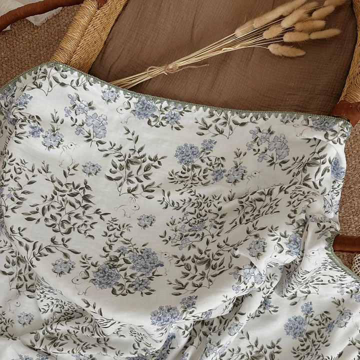 Designed with delicate, nature-inspired prints, these blankets add a touch of charm and sophistication to your baby’s belongings. Their reversible design allows for added versatility, making them a delightful addition to photoshoots, stroller outings, and nursery displays. They bring both function and style to every occasion.