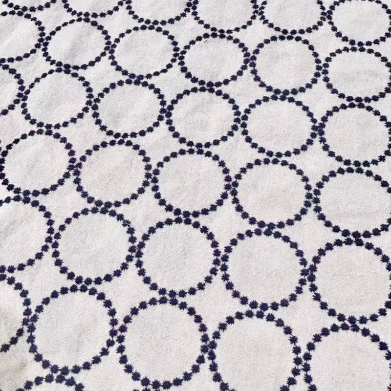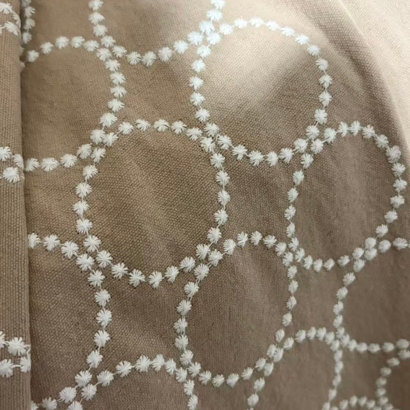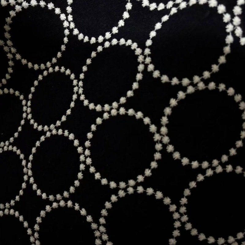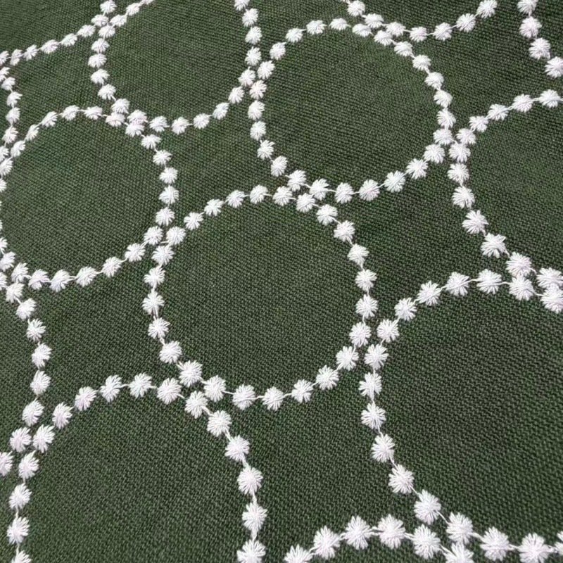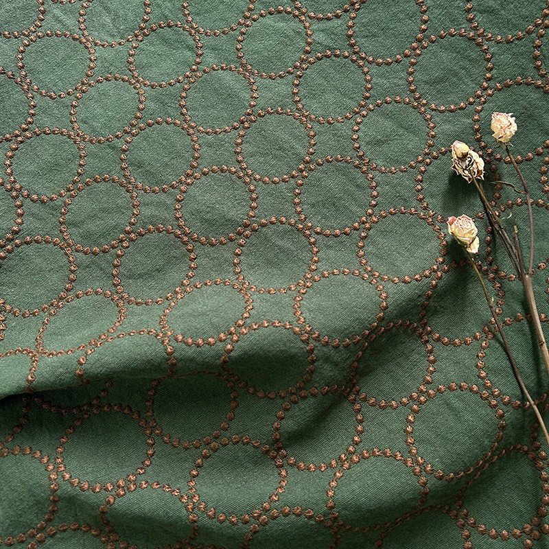 Elevate your sewing and DIY projects with our exquisite 70% cotton and 30% linen blended fabric. Featuring intricate circle and chain stitch embroidery in a variety of stunning colorways, this fabric is designed to add unique texture and style to your creations. Its breathable yet durable handfeel ensures quality that lasts.